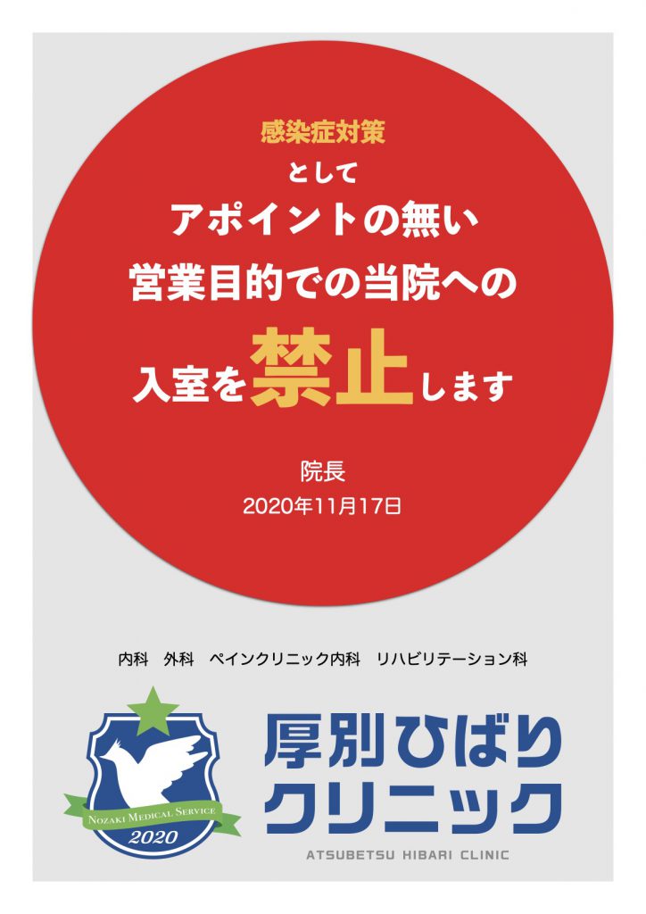 患者さんを感染症から守るために、そのような営業活動をされることをお控えください。